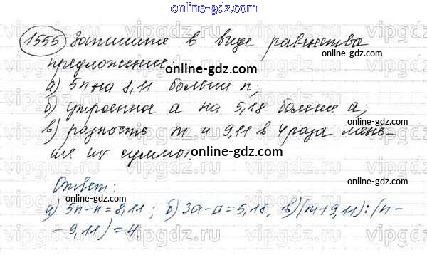 Готовые домашние задания по Математике за 5 класс Учебник Виленкин, Жохов 2013 - Глава 2. Дробные числа (упражнения с 850 по 1849) 1555