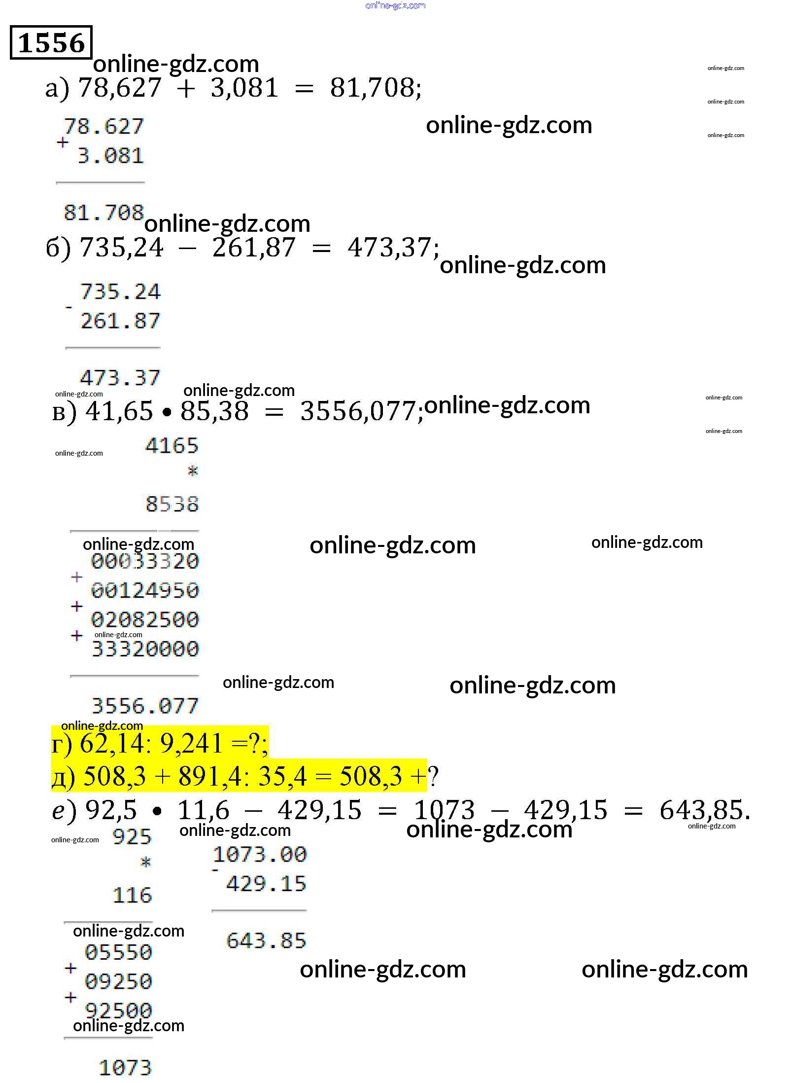 Готовые домашние задания по Математике за 5 класс Учебник Виленкин, Жохов 2013 - Глава 2. Дробные числа (упражнения с 850 по 1849) 1556