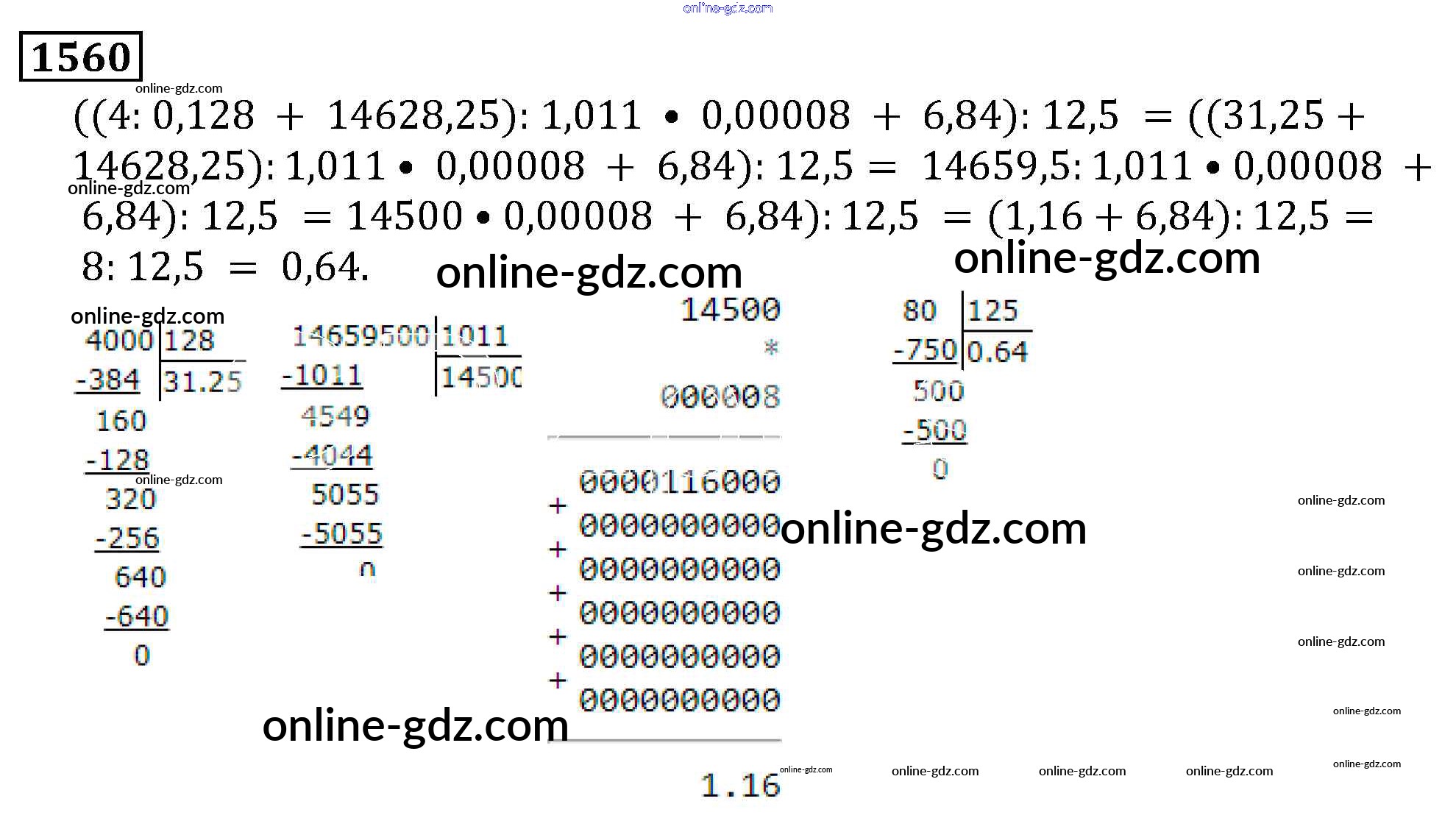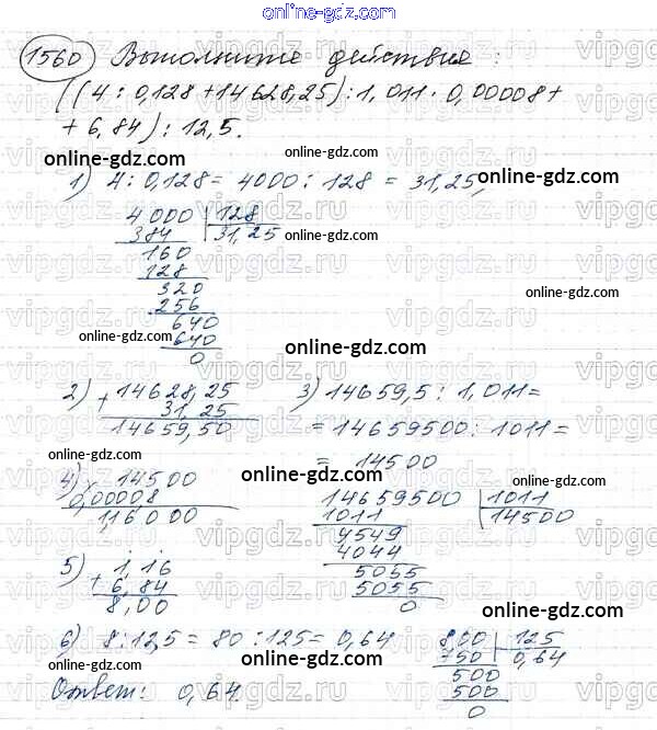 Готовые домашние задания по Математике за 5 класс Учебник Виленкин, Жохов 2013 - Глава 2. Дробные числа (упражнения с 850 по 1849) 1560