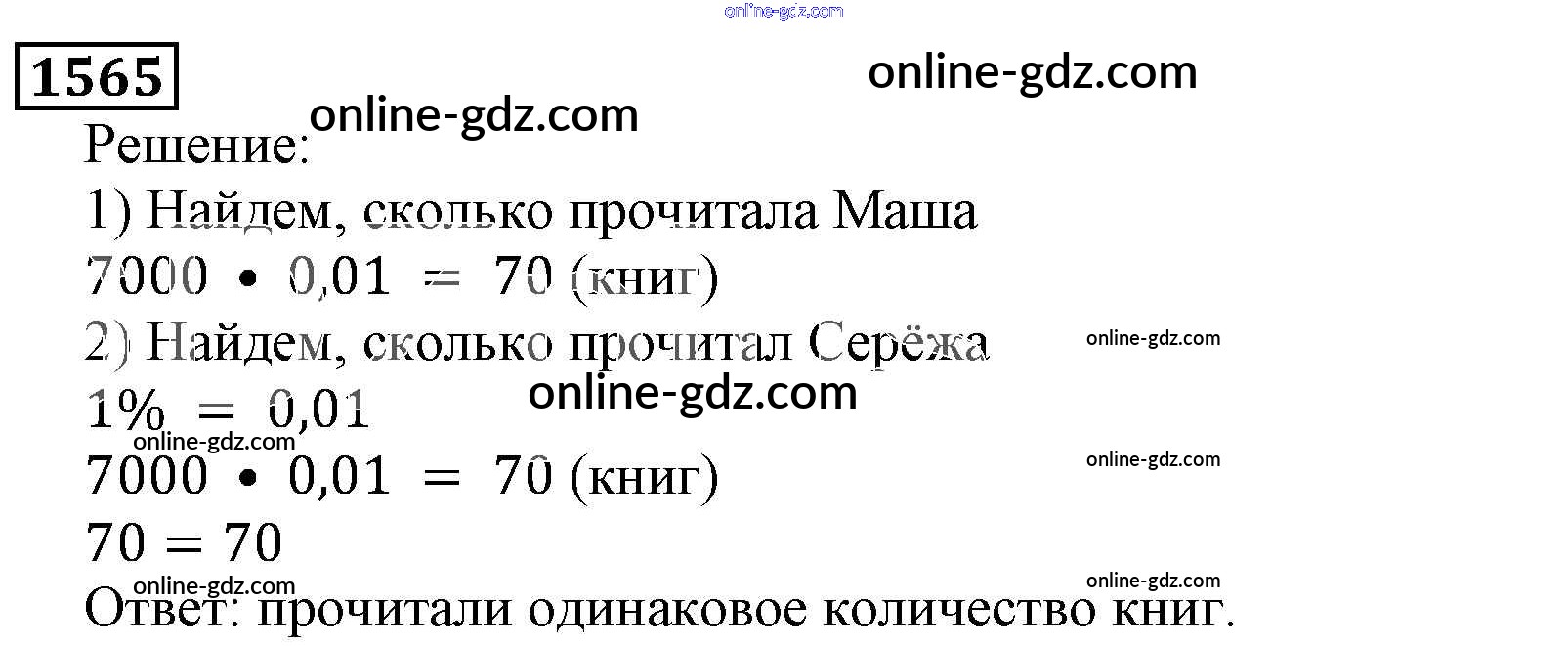 Готовые домашние задания по Математике за 5 класс Учебник Виленкин, Жохов 2013 - Глава 2. Дробные числа (упражнения с 850 по 1849) 1565