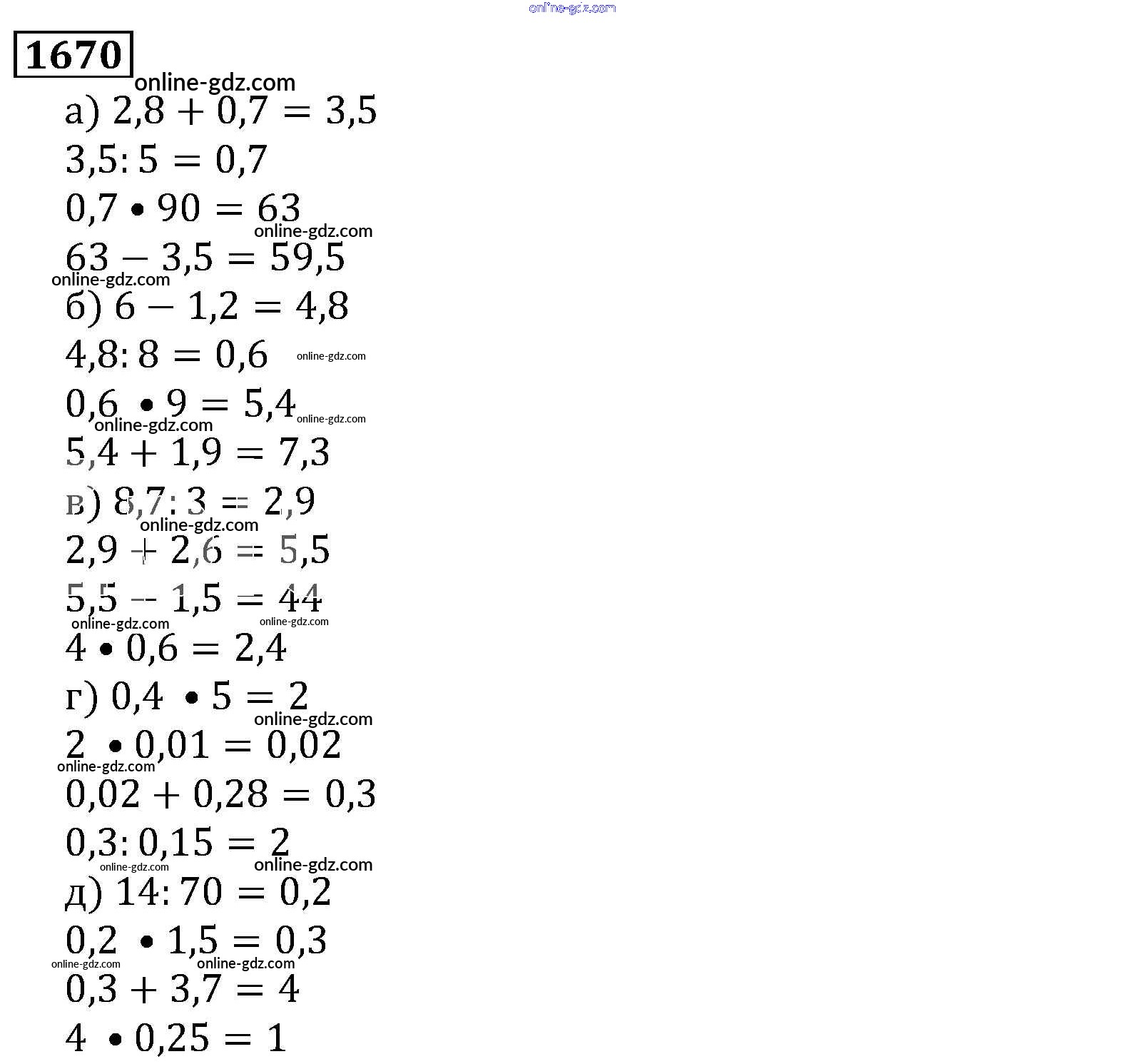 Готовые домашние задания по Математике за 5 класс Учебник Виленкин, Жохов 2013 - Глава 2. Дробные числа (упражнения с 850 по 1849) 1670