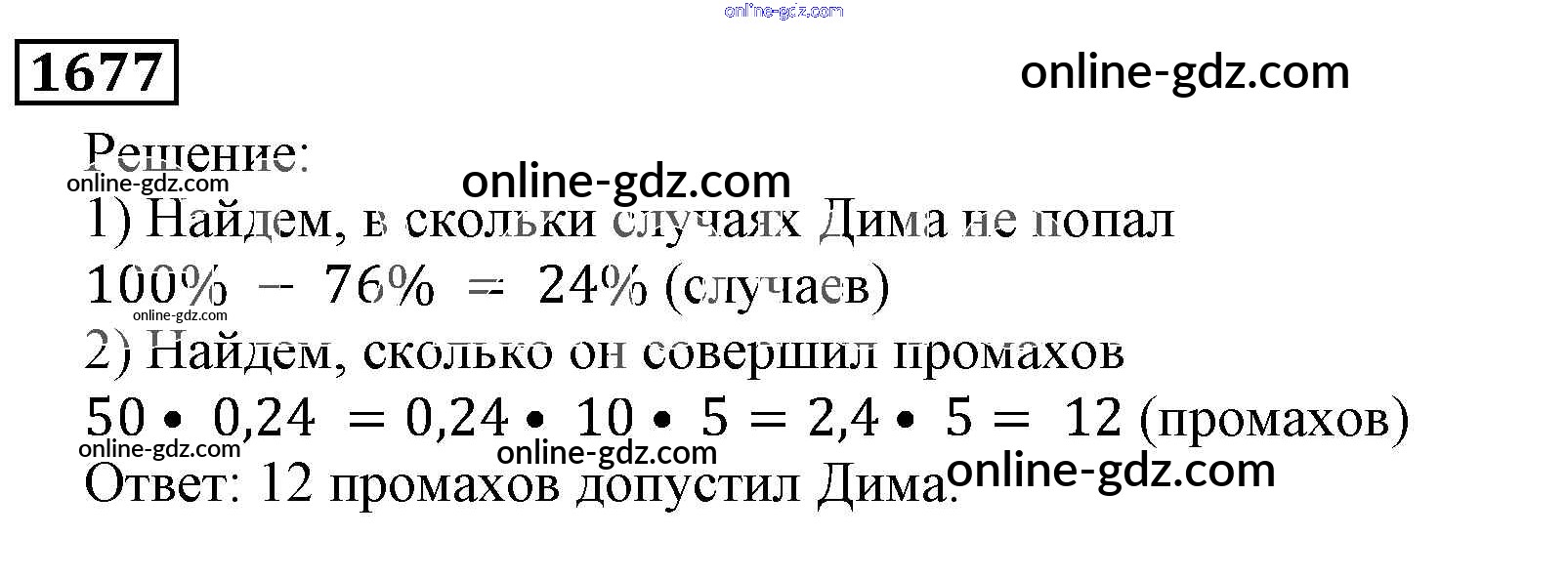 Готовые домашние задания по Математике за 5 класс Учебник Виленкин, Жохов 2013 - Глава 2. Дробные числа (упражнения с 850 по 1849) 1677