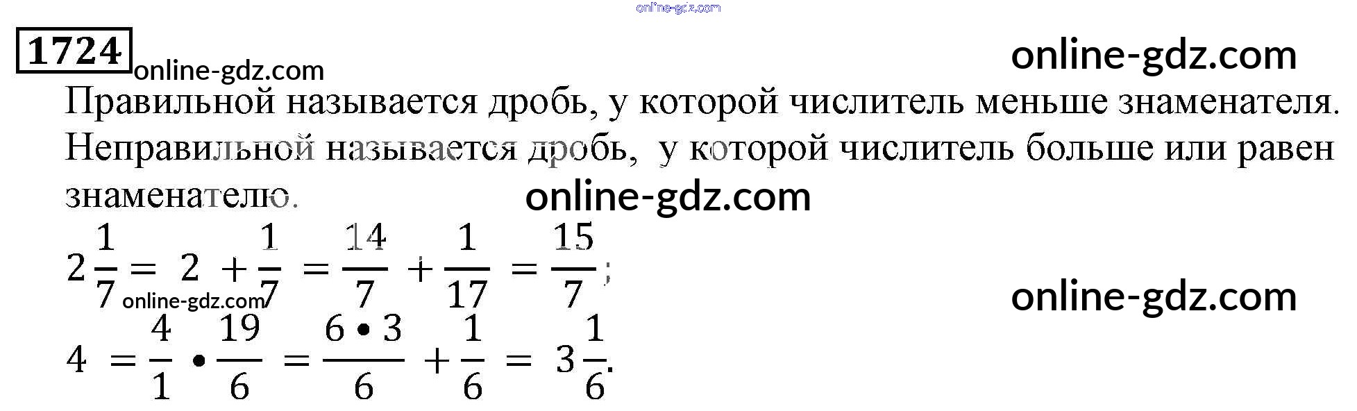 Готовые домашние задания по Математике за 5 класс Учебник Виленкин, Жохов 2013 - Глава 2. Дробные числа (упражнения с 850 по 1849) 1724