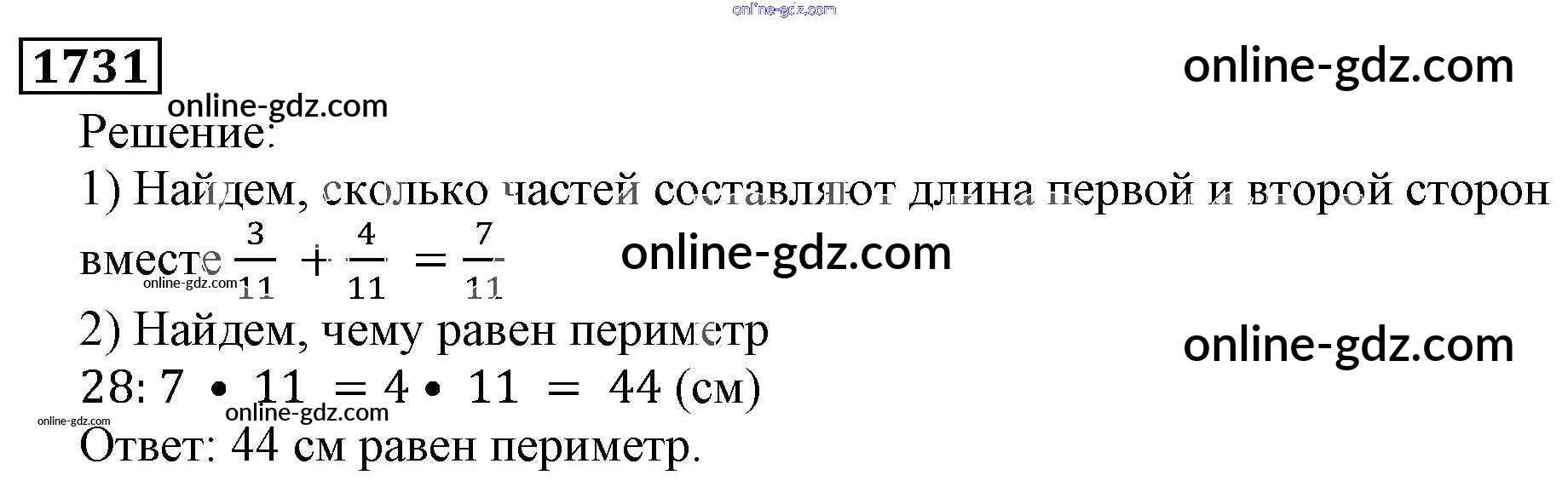 Готовые домашние задания по Математике за 5 класс Учебник Виленкин, Жохов 2013 - Глава 2. Дробные числа (упражнения с 850 по 1849) 1731