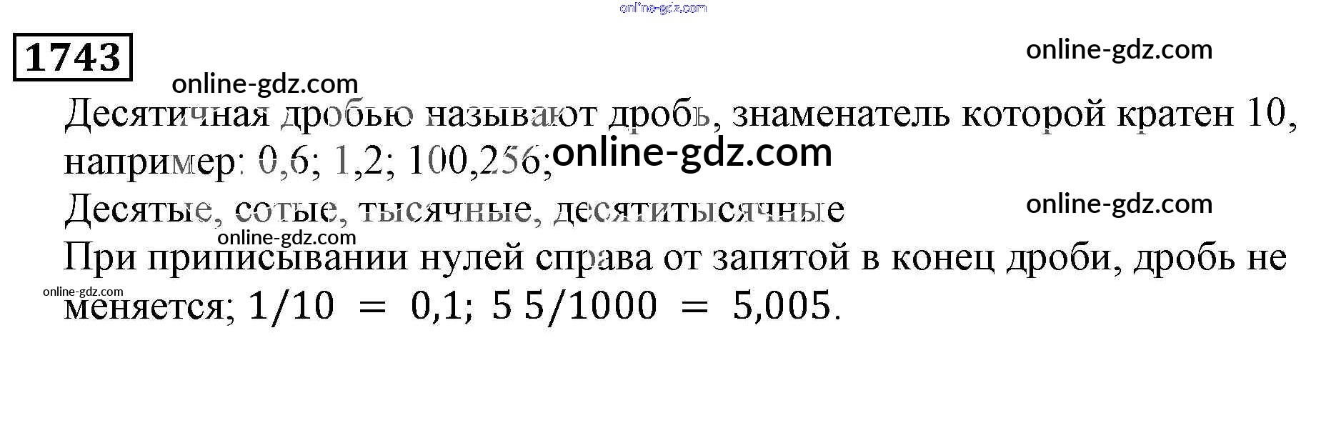 Готовые домашние задания по Математике за 5 класс Учебник Виленкин, Жохов 2013 - Глава 2. Дробные числа (упражнения с 850 по 1849) 1743