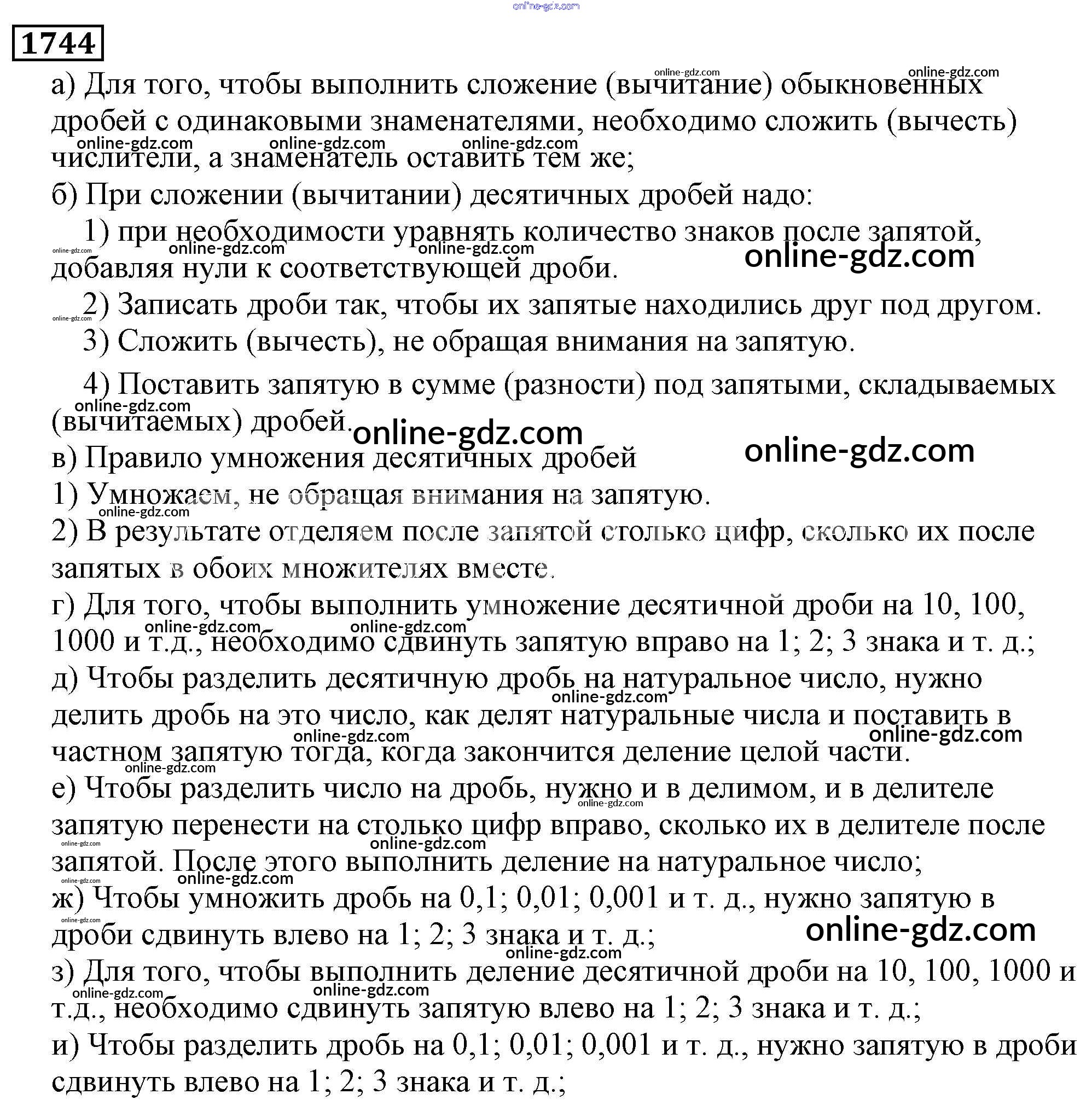 Готовые домашние задания по Математике за 5 класс Учебник Виленкин, Жохов 2013 - Глава 2. Дробные числа (упражнения с 850 по 1849) 1744