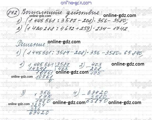 Готовые домашние задания по Математике за 5 класс Учебник Виленкин, Жохов 2013 - Глава 2. Дробные числа (упражнения с 850 по 1849) 872