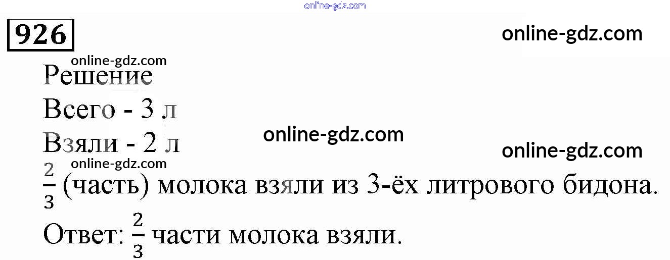 Готовые домашние задания по Математике за 5 класс Учебник Виленкин, Жохов 2013 - Глава 2. Дробные числа (упражнения с 850 по 1849) 926