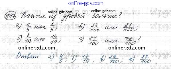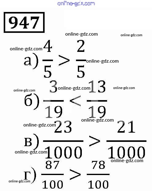 Готовые домашние задания по Математике за 5 класс Учебник Виленкин, Жохов 2013 - Глава 2. Дробные числа (упражнения с 850 по 1849) 947