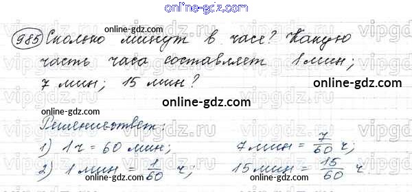 Готовые домашние задания по Математике за 5 класс Учебник Виленкин, Жохов 2013 - Глава 2. Дробные числа (упражнения с 850 по 1849) 985