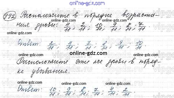 Готовые домашние задания по Математике за 5 класс Учебник Виленкин, Жохов 2013 - Глава 2. Дробные числа (упражнения с 850 по 1849) 992