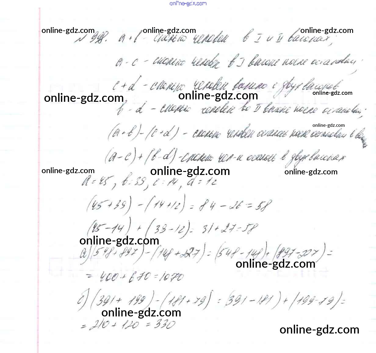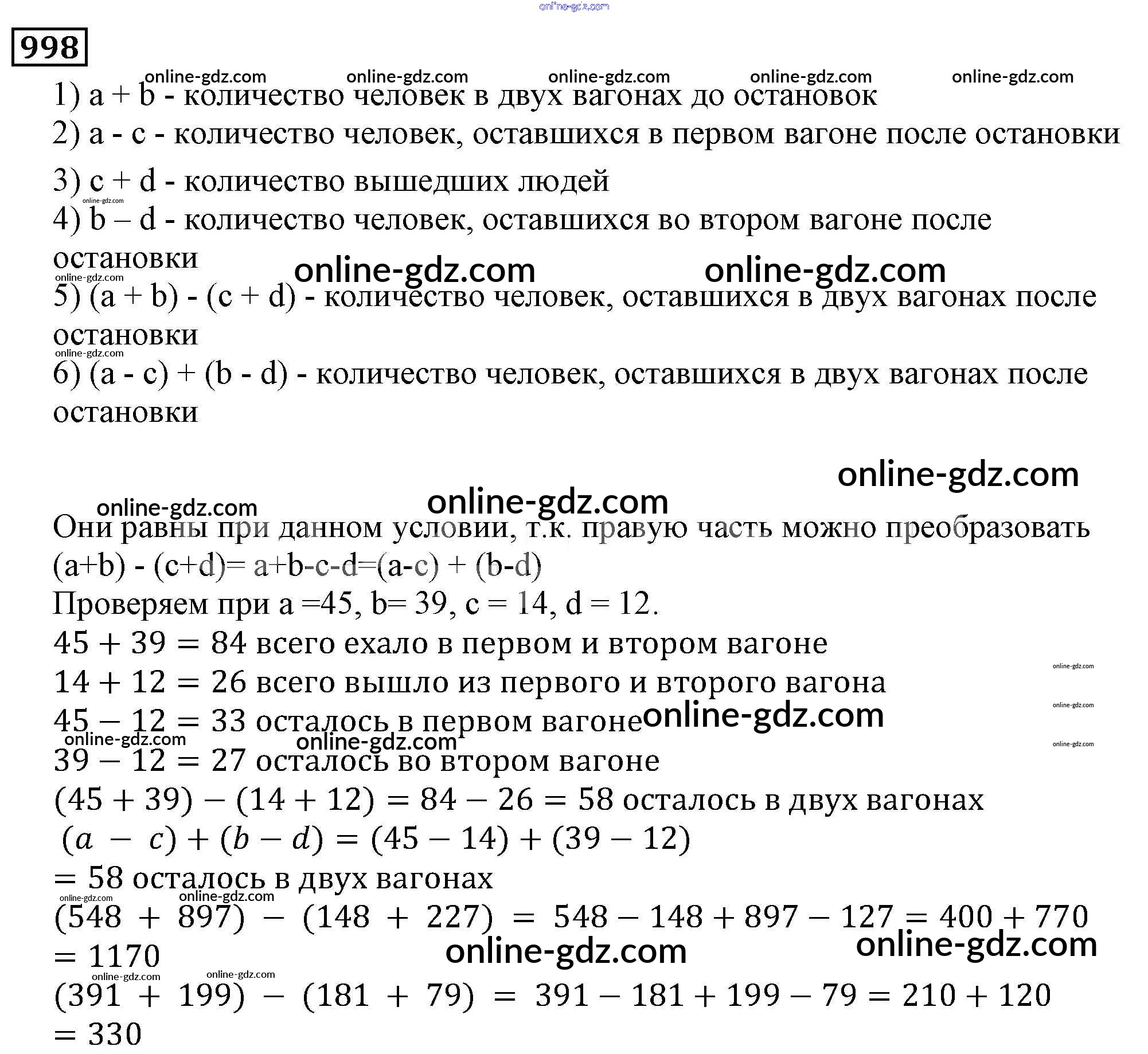 Готовые домашние задания по Математике за 5 класс Учебник Виленкин, Жохов 2013 - Глава 2. Дробные числа (упражнения с 850 по 1849) 998