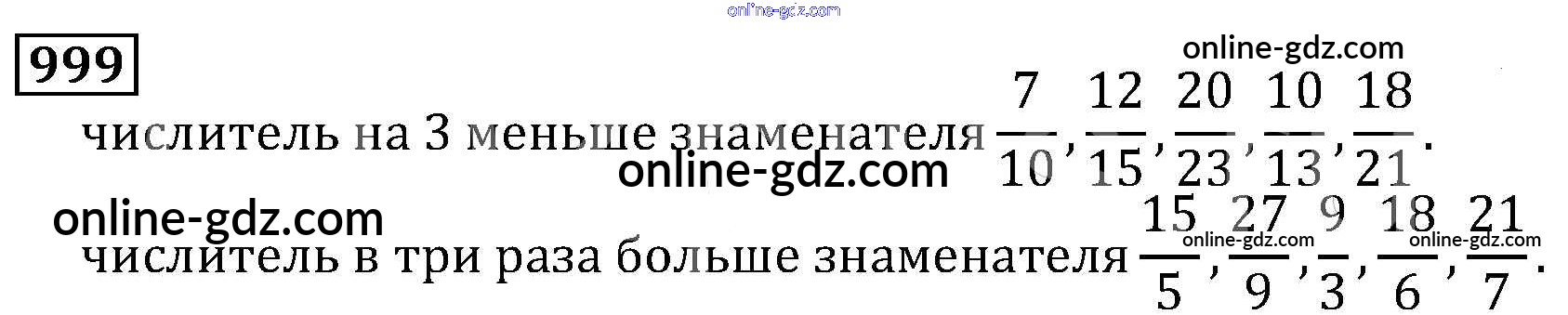 Готовые домашние задания по Математике за 5 класс Учебник Виленкин, Жохов 2013 - Глава 2. Дробные числа (упражнения с 850 по 1849) 999
