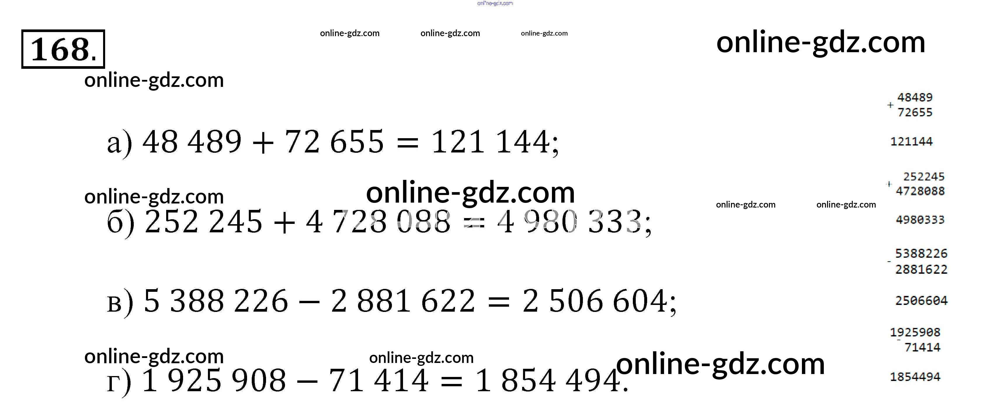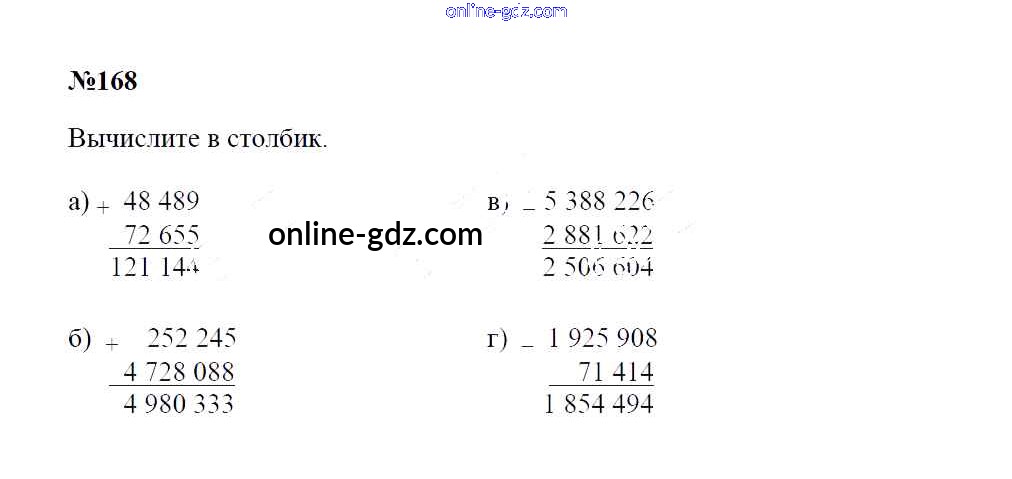 Готовые домашние задания по Математике за 5 класс Учебник Зубарева, Мордкович 2015 - Упражнения 168