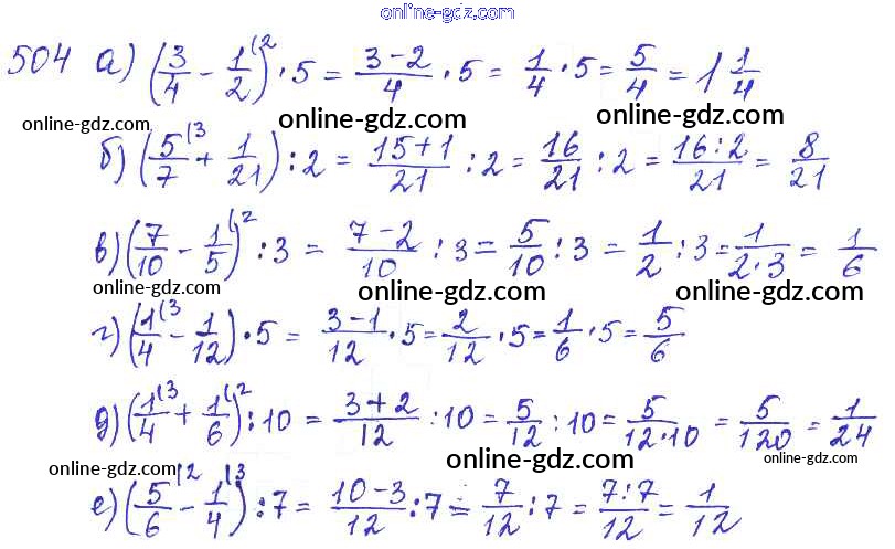 Готовые домашние задания по Математике за 5 класс Учебник Зубарева, Мордкович 2015 - Упражнения 504