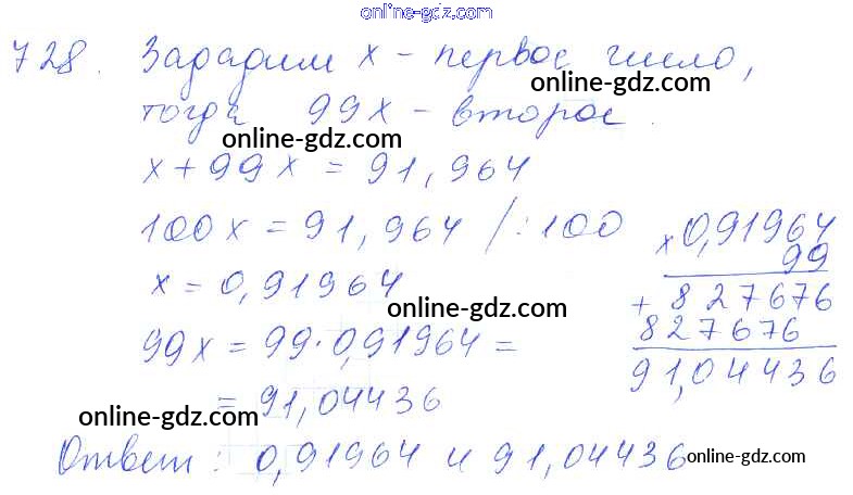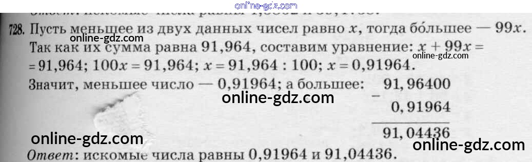 Готовые домашние задания по Математике за 5 класс Учебник Зубарева, Мордкович 2015 - Упражнения 728