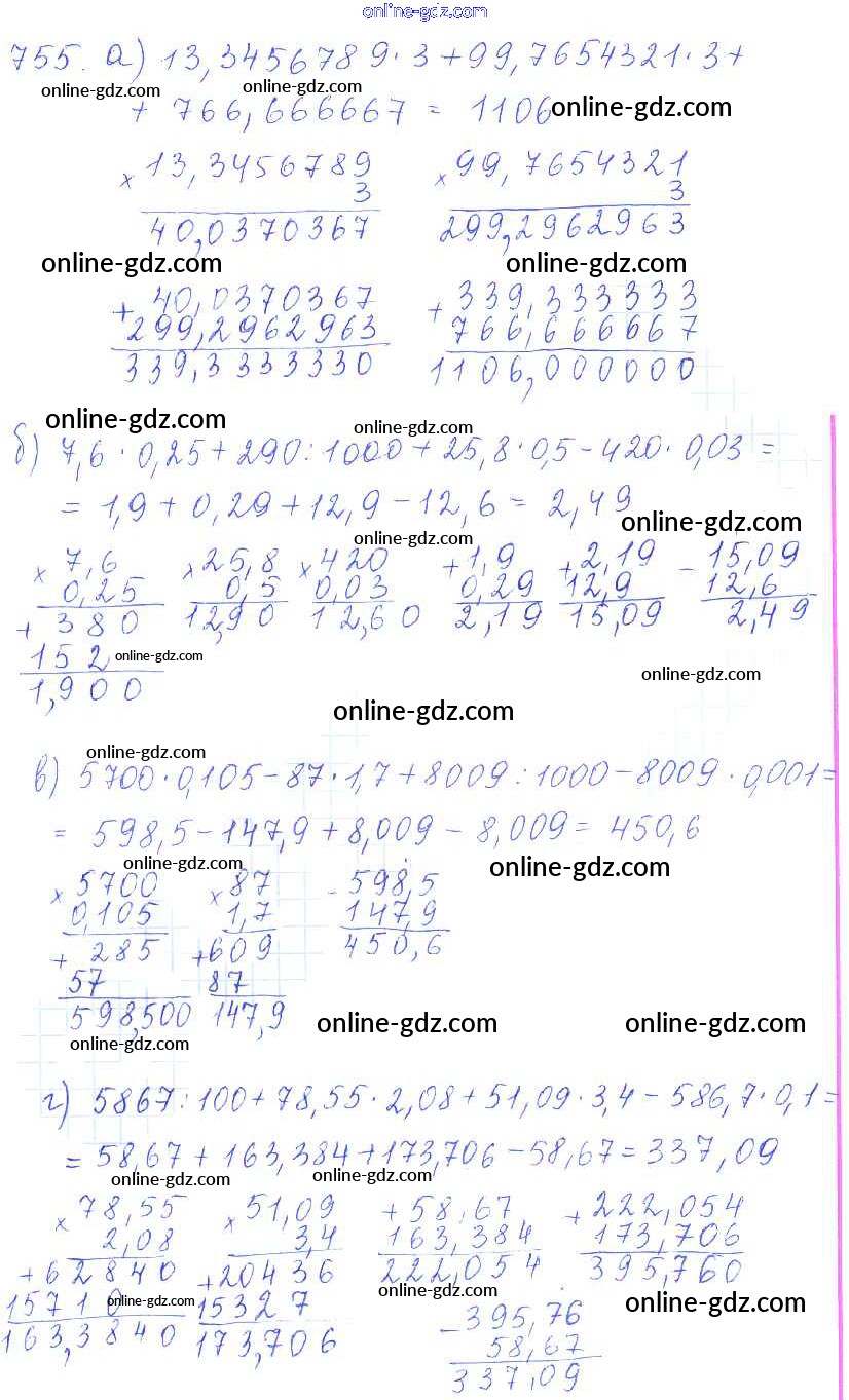 Готовые домашние задания по Математике за 5 класс Учебник Зубарева, Мордкович 2015 - Упражнения 755