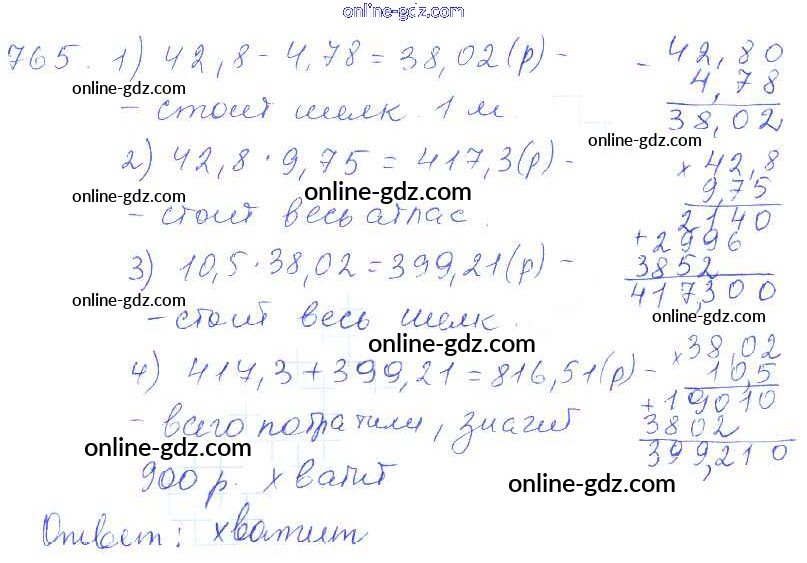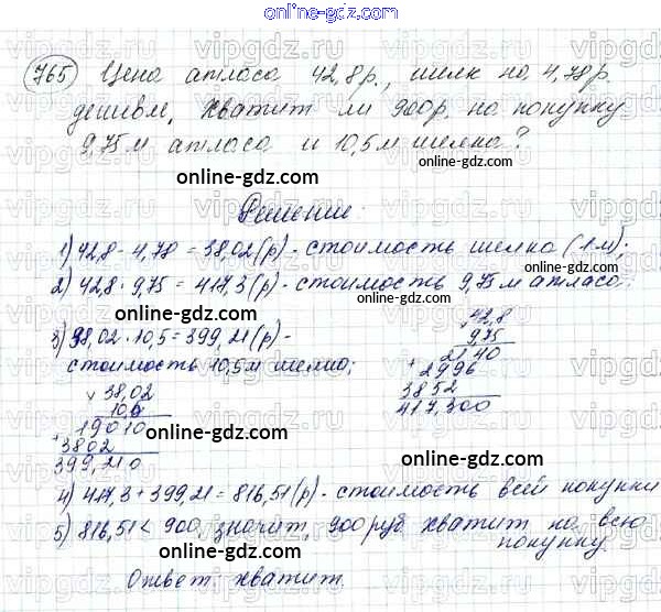 Готовые домашние задания по Математике за 5 класс Учебник Зубарева, Мордкович 2015 - Упражнения 765