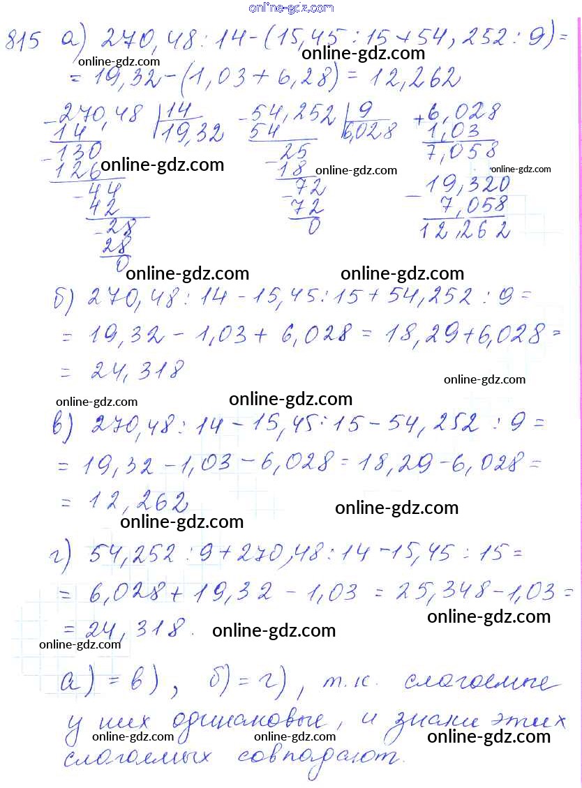 Готовые домашние задания по Математике за 5 класс Учебник Зубарева, Мордкович 2015 - Упражнения 815
