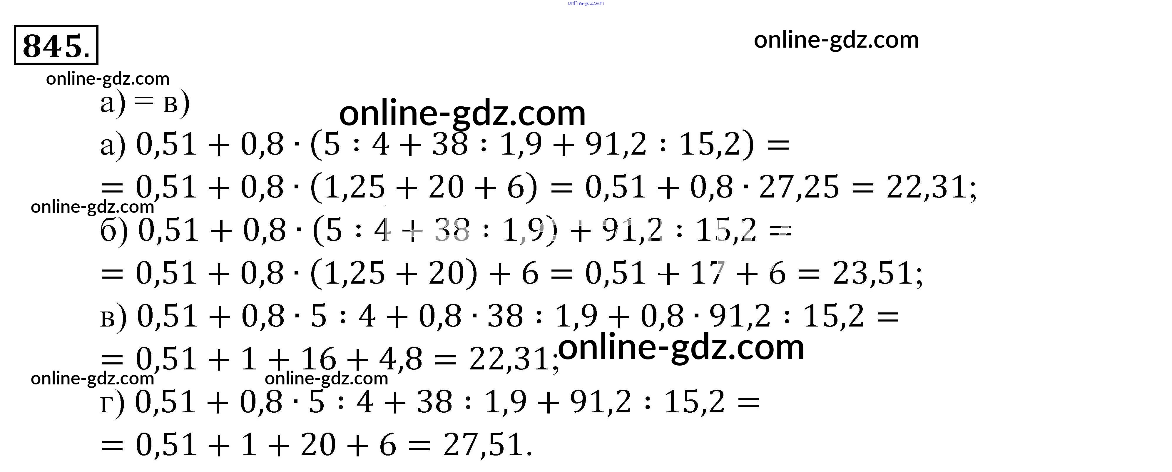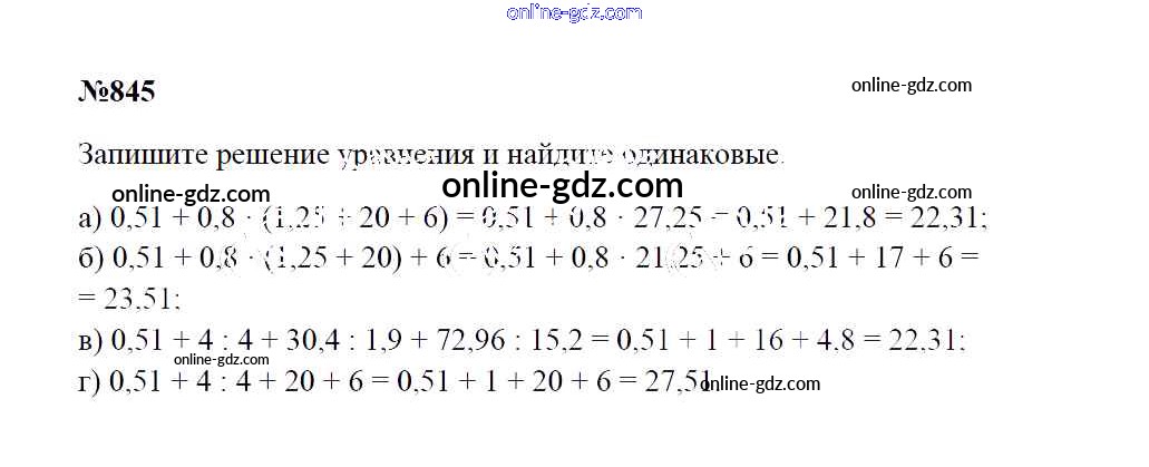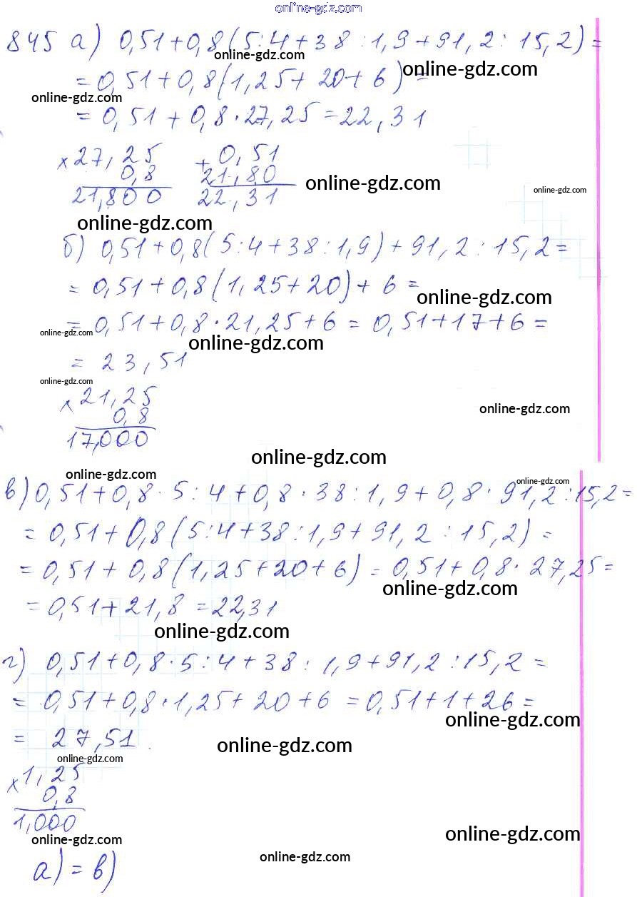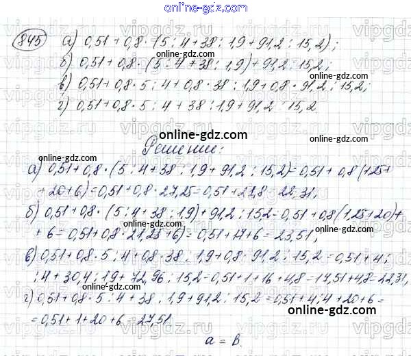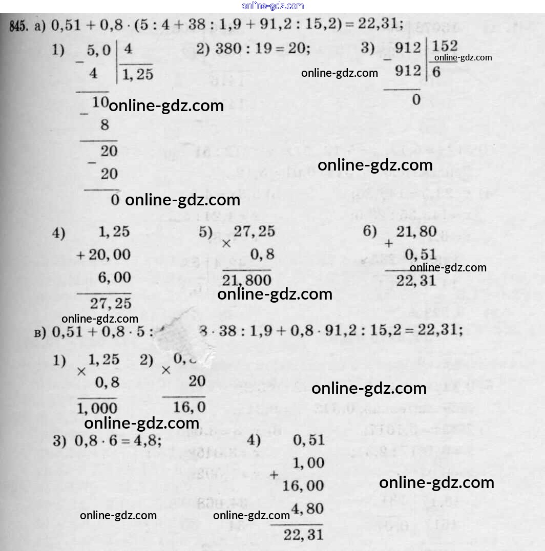Готовые домашние задания по Математике за 5 класс Учебник Зубарева, Мордкович 2015 - Упражнения 845