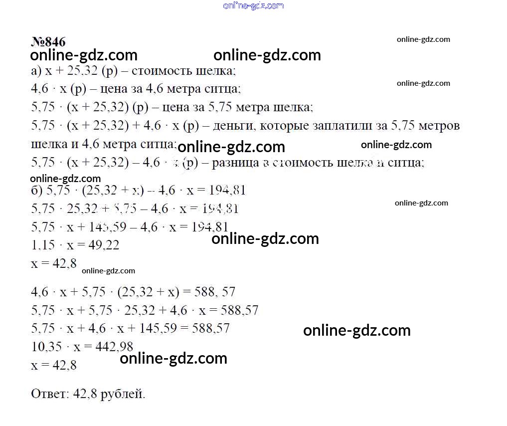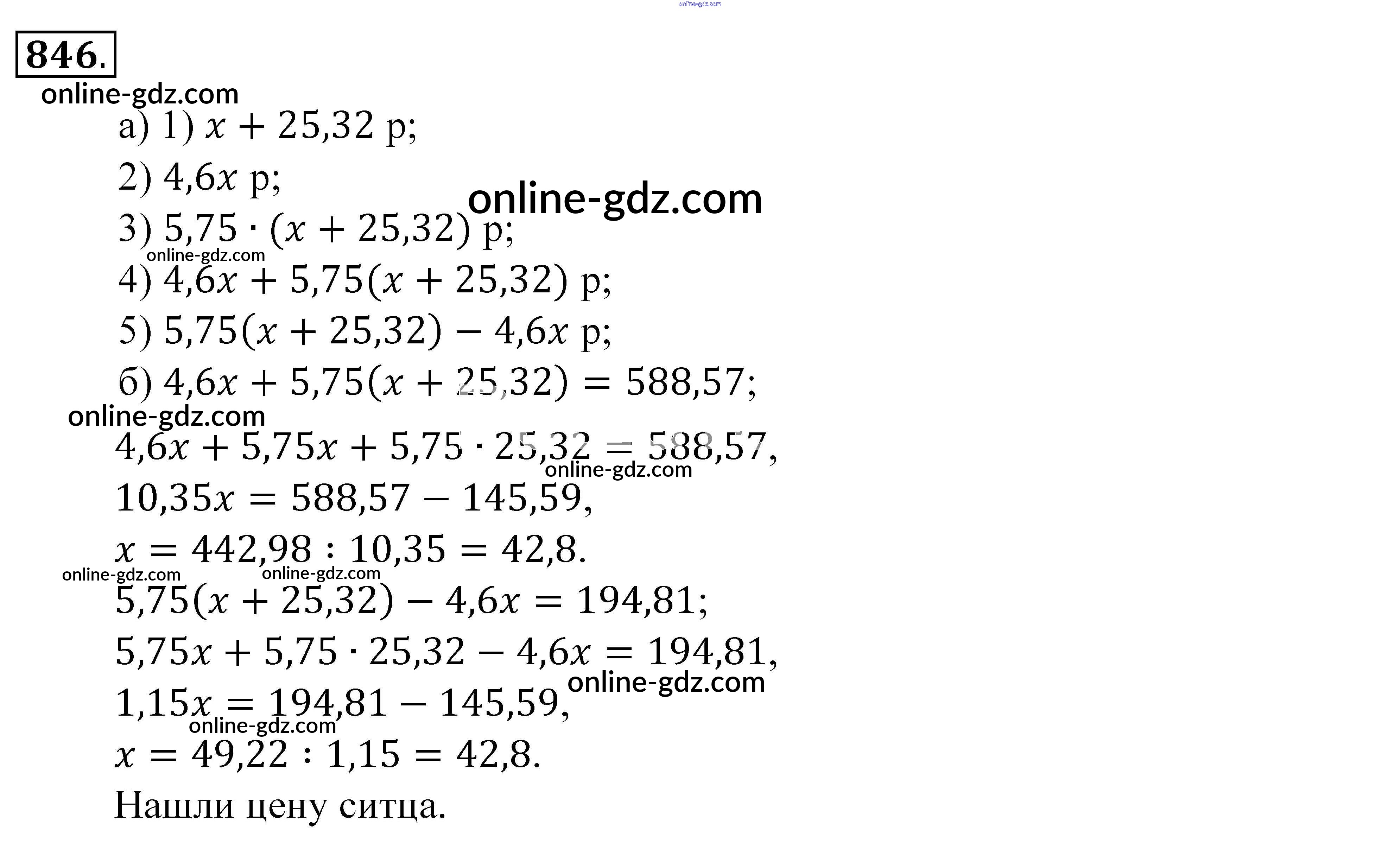 Готовые домашние задания по Математике за 5 класс Учебник Зубарева, Мордкович 2015 - Упражнения 846