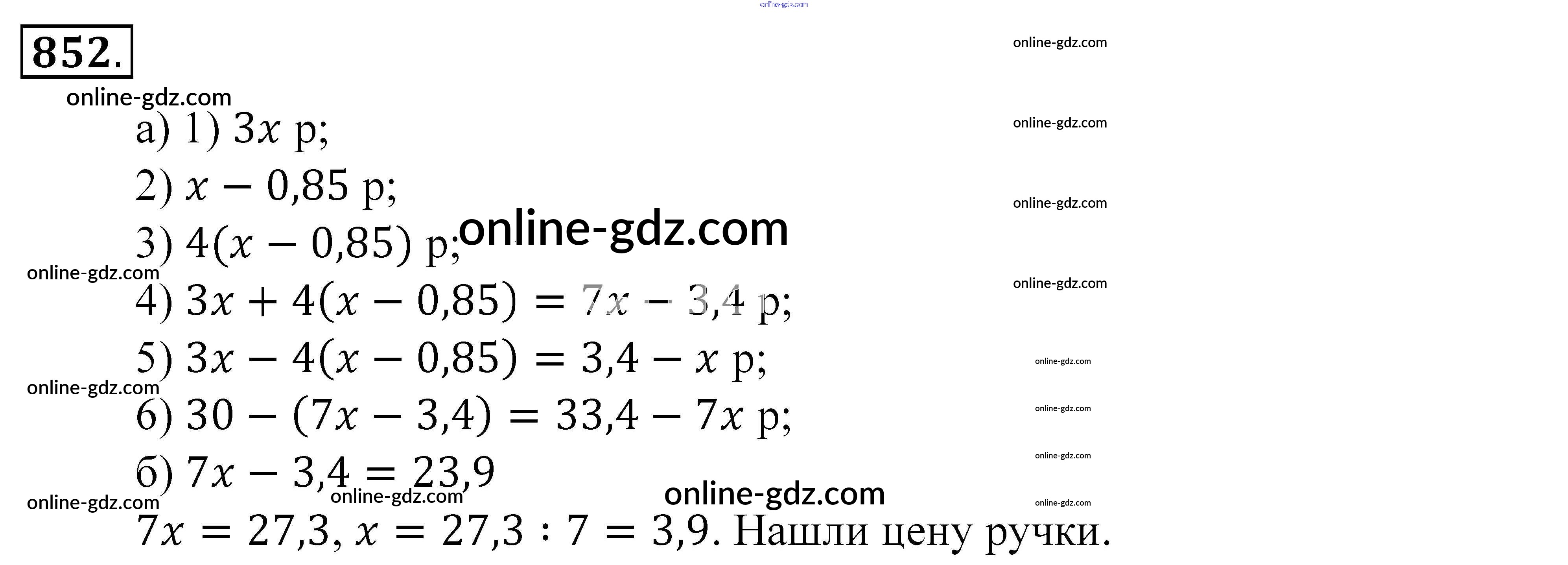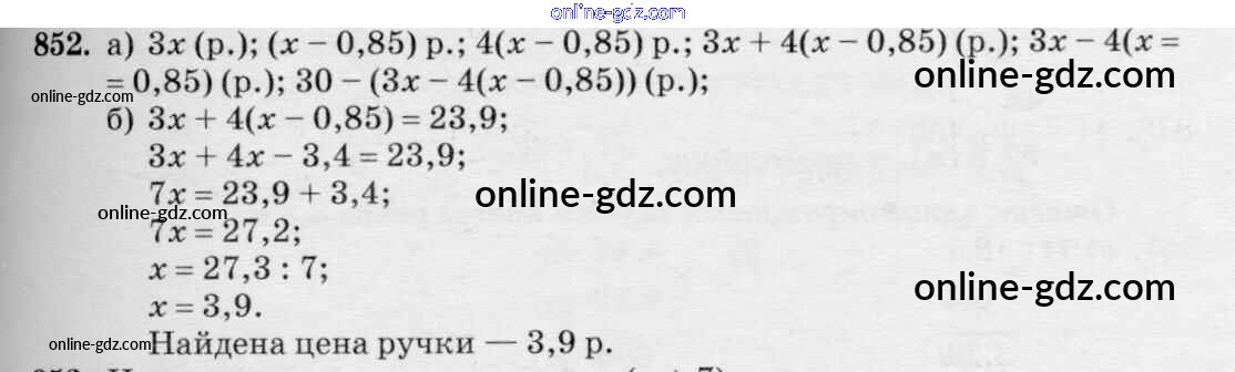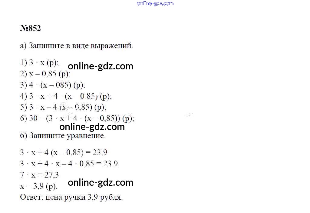 Готовые домашние задания по Математике за 5 класс Учебник Зубарева, Мордкович 2015 - Упражнения 852