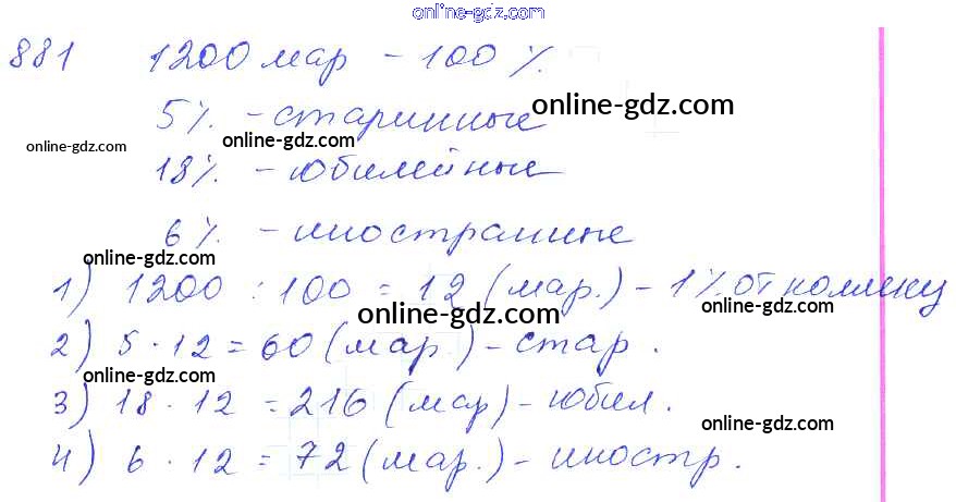 Готовые домашние задания по Математике за 5 класс Учебник Зубарева, Мордкович 2015 - Упражнения 881