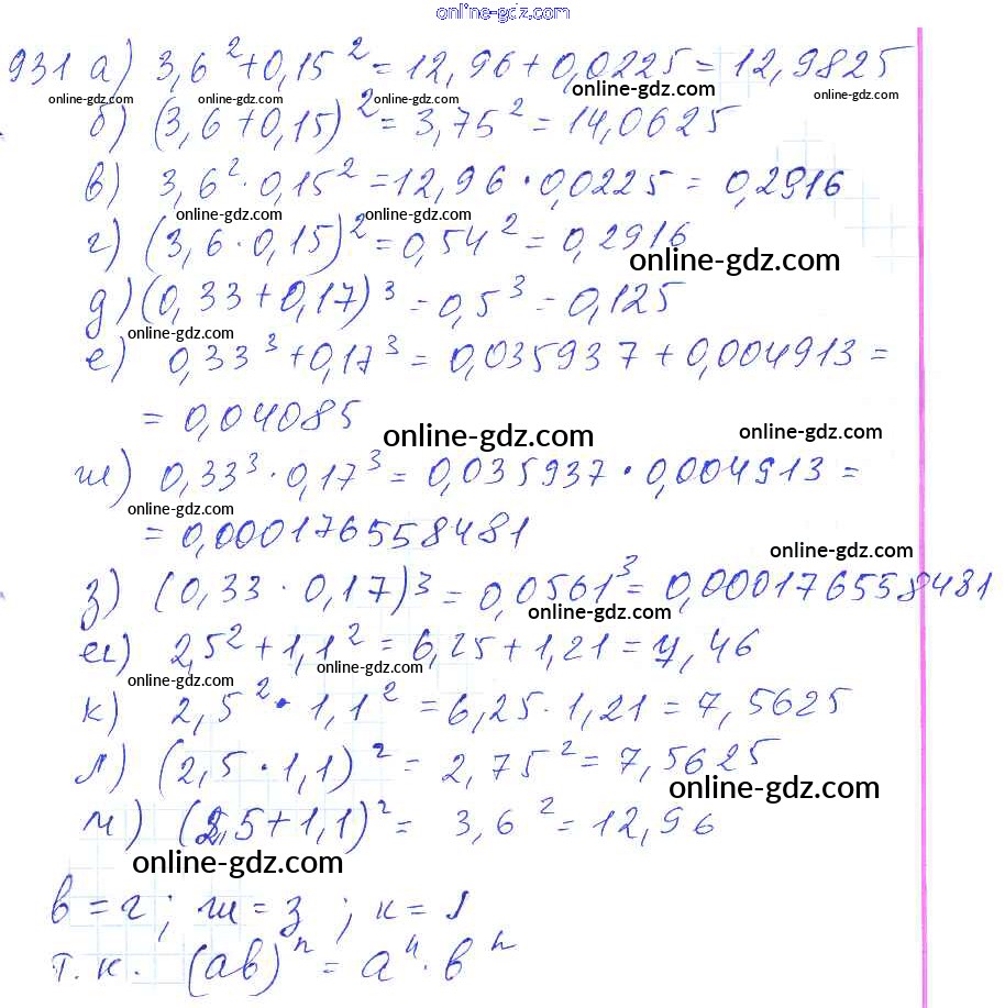 Готовые домашние задания по Математике за 5 класс Учебник Зубарева, Мордкович 2015 - Упражнения 931