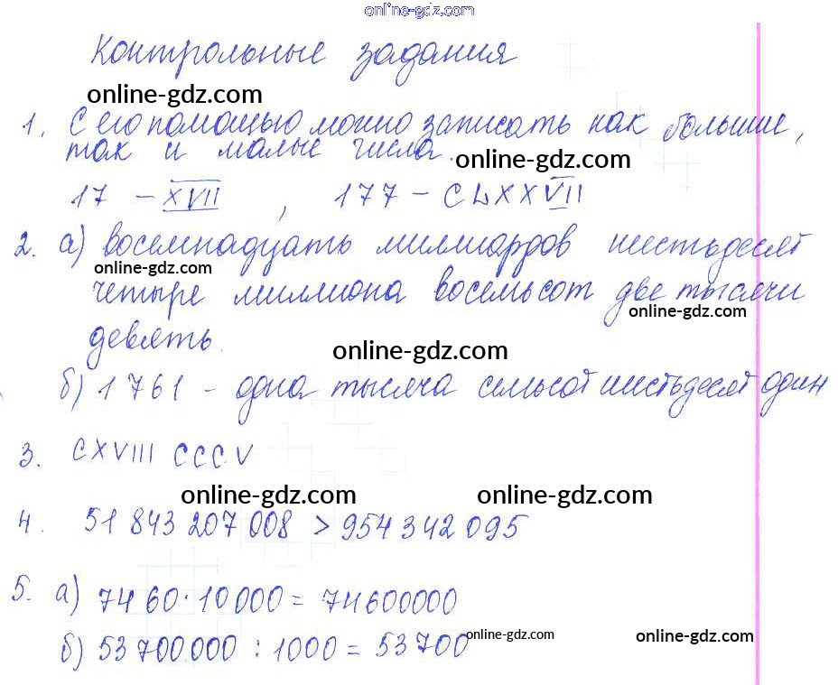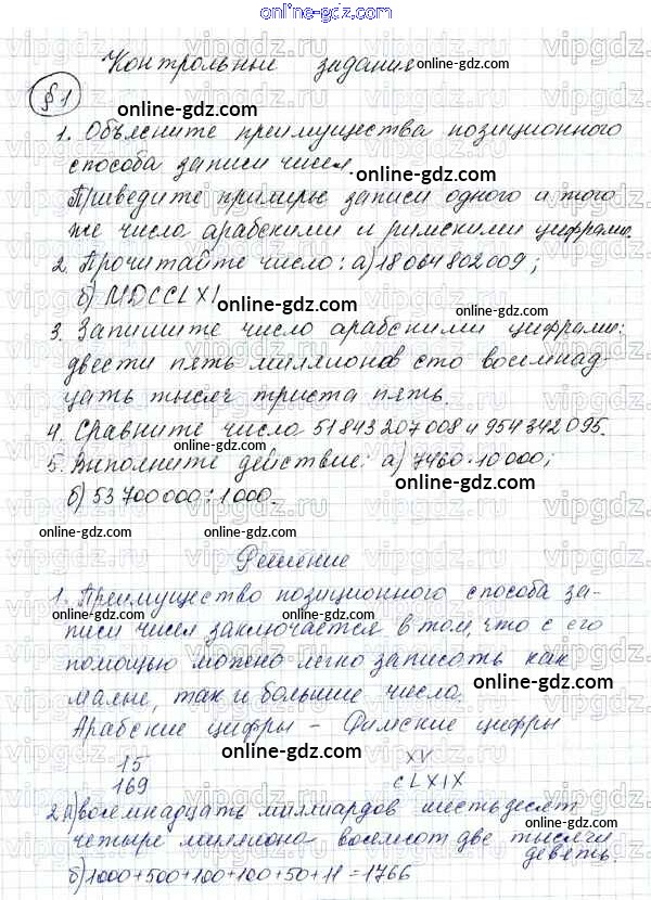 Готовые домашние задания по Математике за 5 класс Учебник Зубарева, Мордкович 2015 - Контрольные вопросы и задания §1