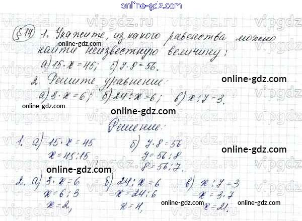 Готовые домашние задания по Математике за 5 класс Учебник Зубарева, Мордкович 2015 - Контрольные вопросы и задания §14