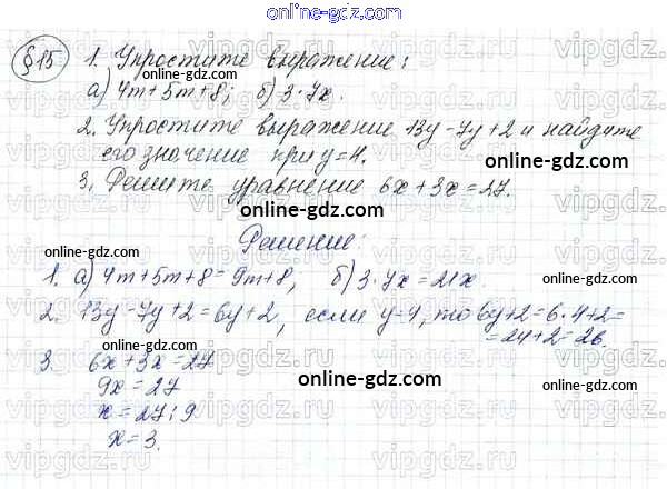 Готовые домашние задания по Математике за 5 класс Учебник Зубарева, Мордкович 2015 - Контрольные вопросы и задания §15