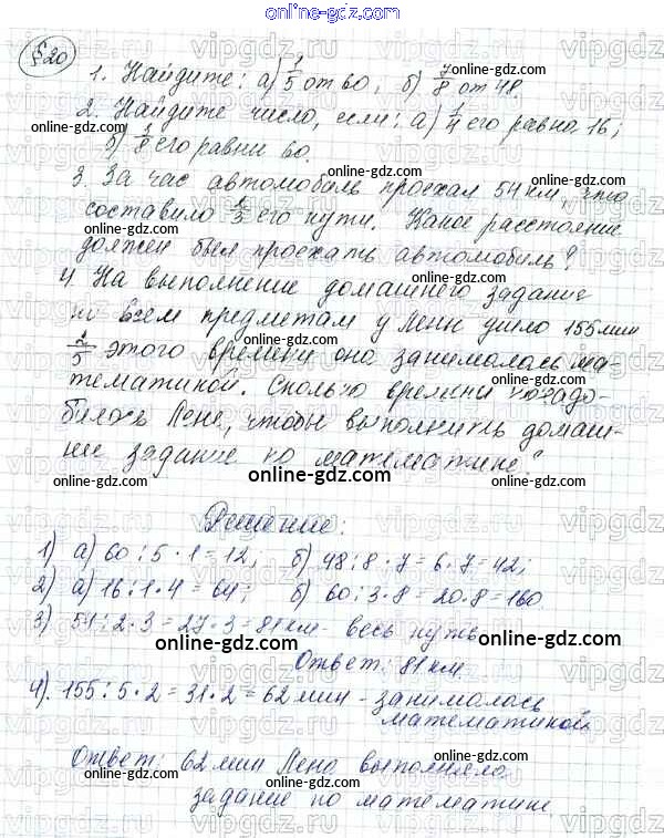 Готовые домашние задания по Математике за 5 класс Учебник Зубарева, Мордкович 2015 - Контрольные вопросы и задания §20