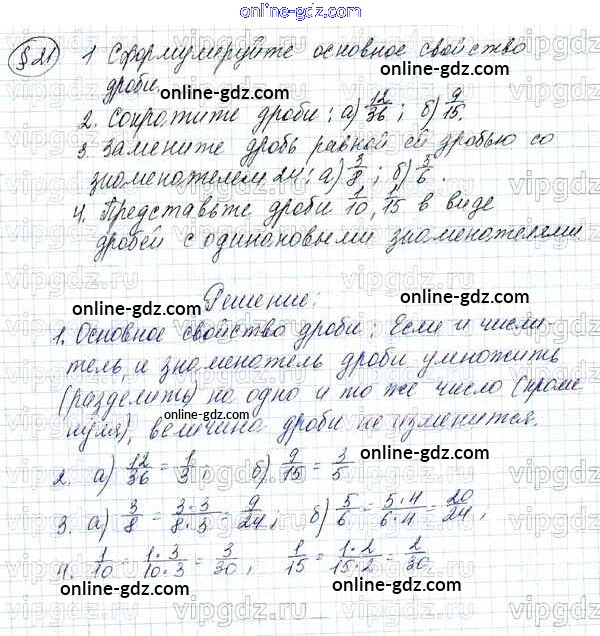 Готовые домашние задания по Математике за 5 класс Учебник Зубарева, Мордкович 2015 - Контрольные вопросы и задания §21