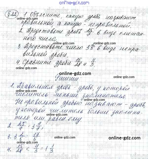 Готовые домашние задания по Математике за 5 класс Учебник Зубарева, Мордкович 2015 - Контрольные вопросы и задания §22