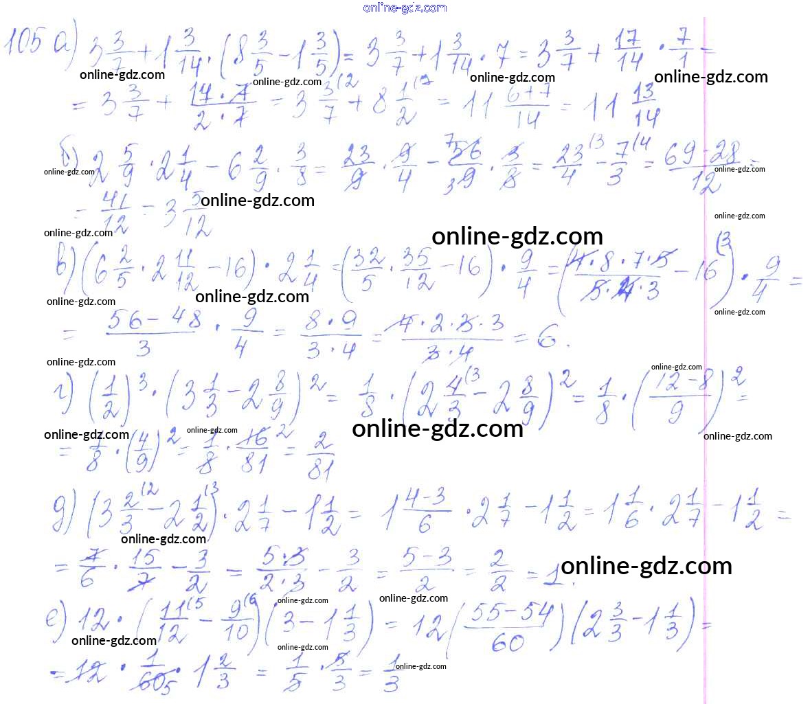 Готовые домашние задания по Математике за 6 класс Дидактические материалы Чесноков, Нешков 2014 - Вариант 1 Самостоятельные работы 105