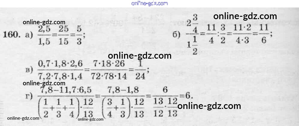 Готовые домашние задания по Математике за 6 класс Дидактические материалы Чесноков, Нешков 2014 - Вариант 1 Самостоятельные работы 160