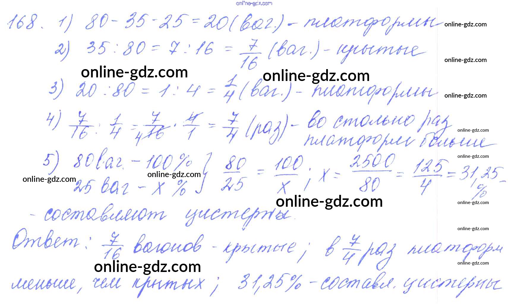 Готовые домашние задания по Математике за 6 класс Дидактические материалы Чесноков, Нешков 2014 - Вариант 1 Самостоятельные работы 168