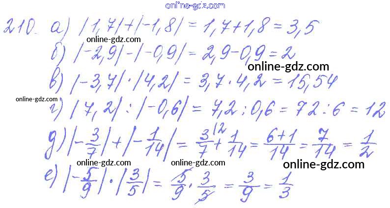 Готовые домашние задания по Математике за 6 класс Дидактические материалы Чесноков, Нешков 2014 - Вариант 1 Самостоятельные работы 210