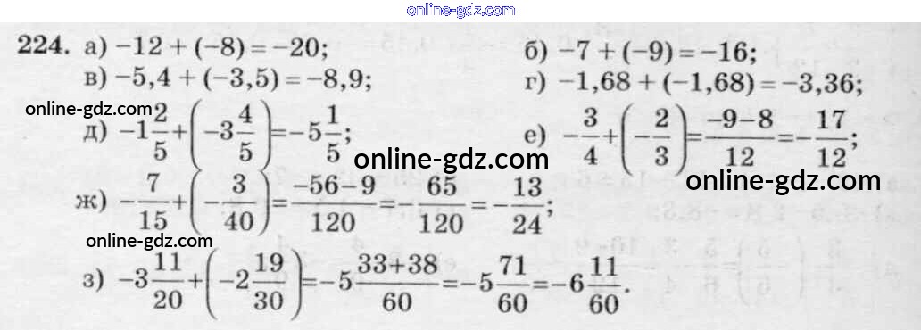 Готовые домашние задания по Математике за 6 класс Дидактические материалы Чесноков, Нешков 2014 - Вариант 1 Самостоятельные работы 224