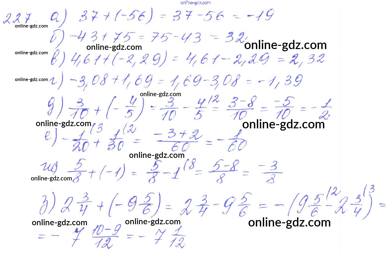 Готовые домашние задания по Математике за 6 класс Дидактические материалы Чесноков, Нешков 2014 - Вариант 1 Самостоятельные работы 227