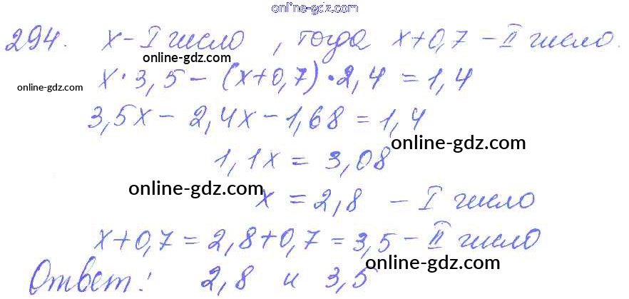 Готовые домашние задания по Математике за 6 класс Дидактические материалы Чесноков, Нешков 2014 - Вариант 1 Самостоятельные работы 294