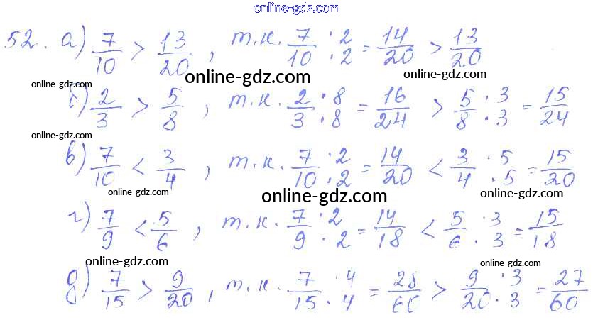 Готовые домашние задания по Математике за 6 класс Дидактические материалы Чесноков, Нешков 2014 - Вариант 1 Самостоятельные работы 52