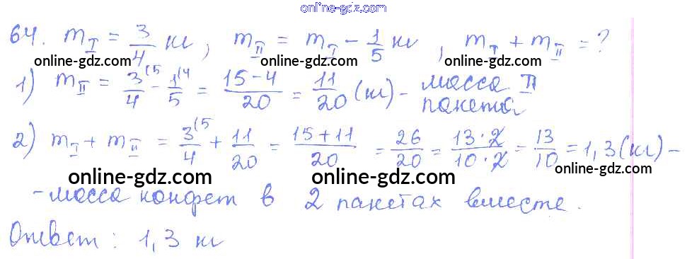 Готовые домашние задания по Математике за 6 класс Дидактические материалы Чесноков, Нешков 2014 - Вариант 1 Самостоятельные работы 64
