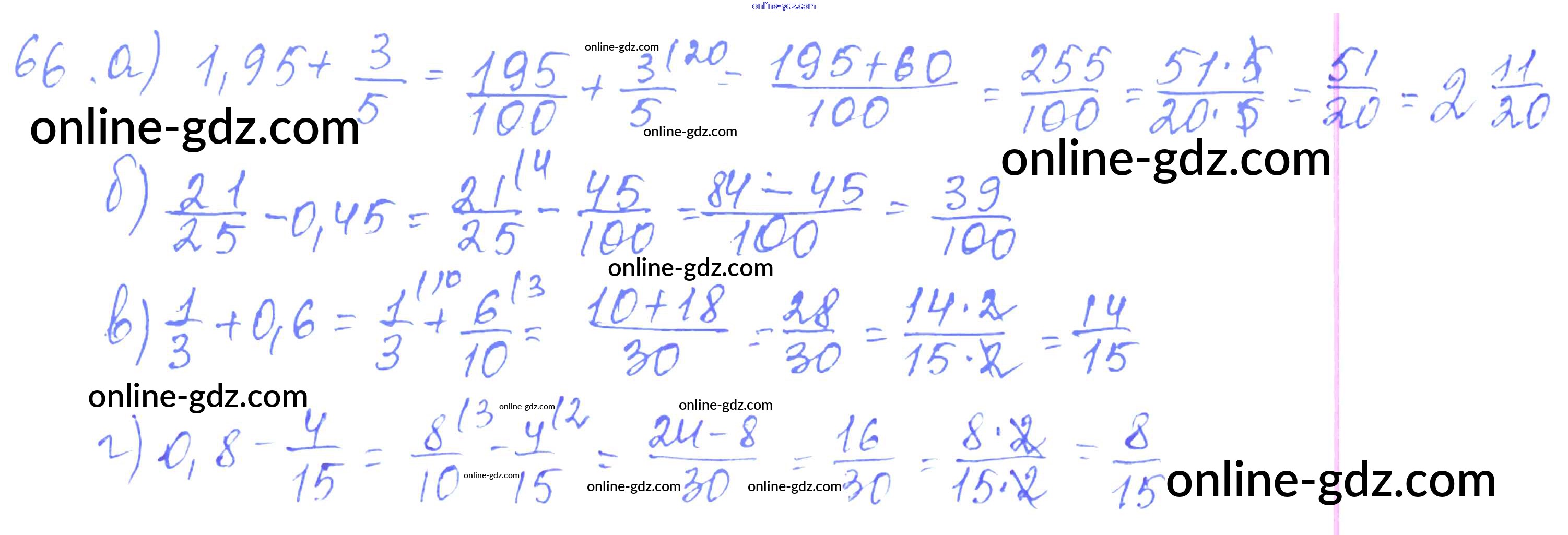 Готовые домашние задания по Математике за 6 класс Дидактические материалы Чесноков, Нешков 2014 - Вариант 1 Самостоятельные работы 66