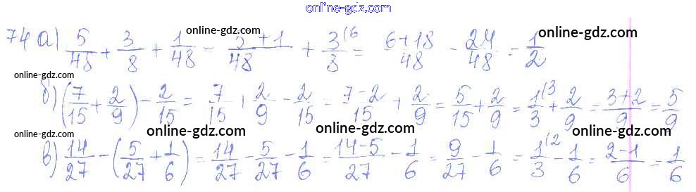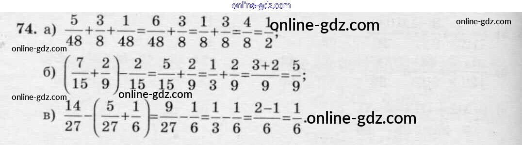 Готовые домашние задания по Математике за 6 класс Дидактические материалы Чесноков, Нешков 2014 - Вариант 1 Самостоятельные работы 74