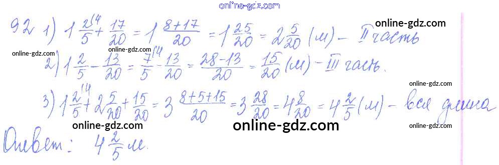 Готовые домашние задания по Математике за 6 класс Дидактические материалы Чесноков, Нешков 2014 - Вариант 1 Самостоятельные работы 92