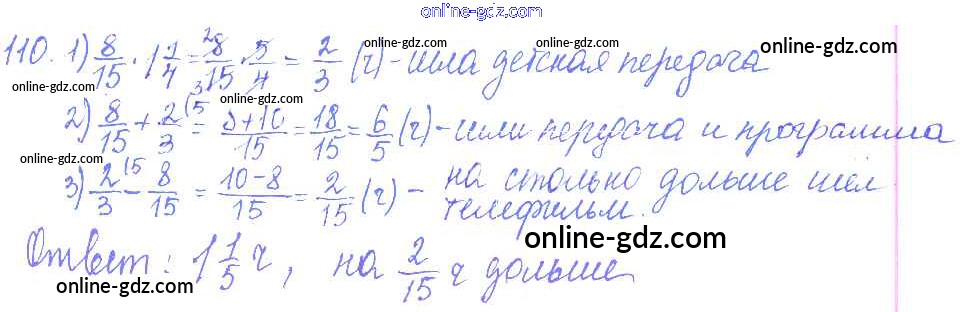 Готовые домашние задания по Математике за 6 класс Дидактические материалы Чесноков, Нешков 2014 - Вариант 2 Самостоятельные работы 110
