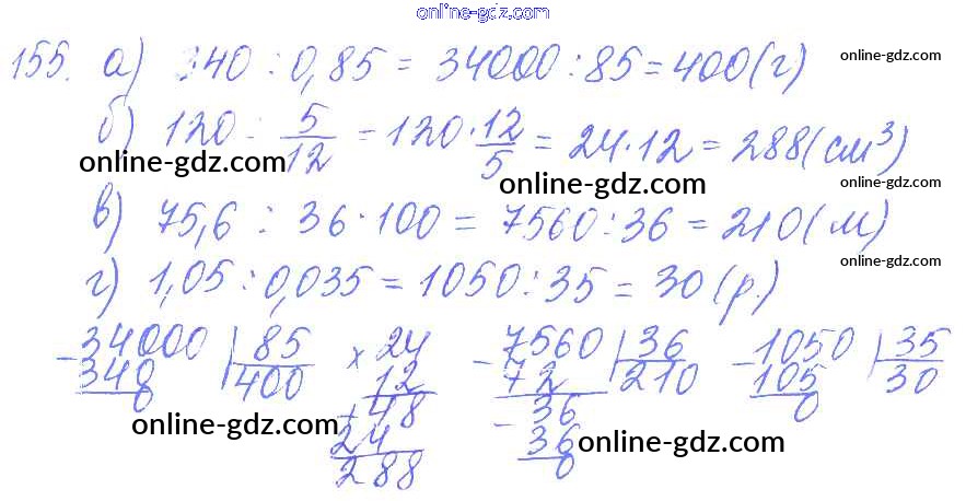 Готовые домашние задания по Математике за 6 класс Дидактические материалы Чесноков, Нешков 2014 - Вариант 2 Самостоятельные работы 155