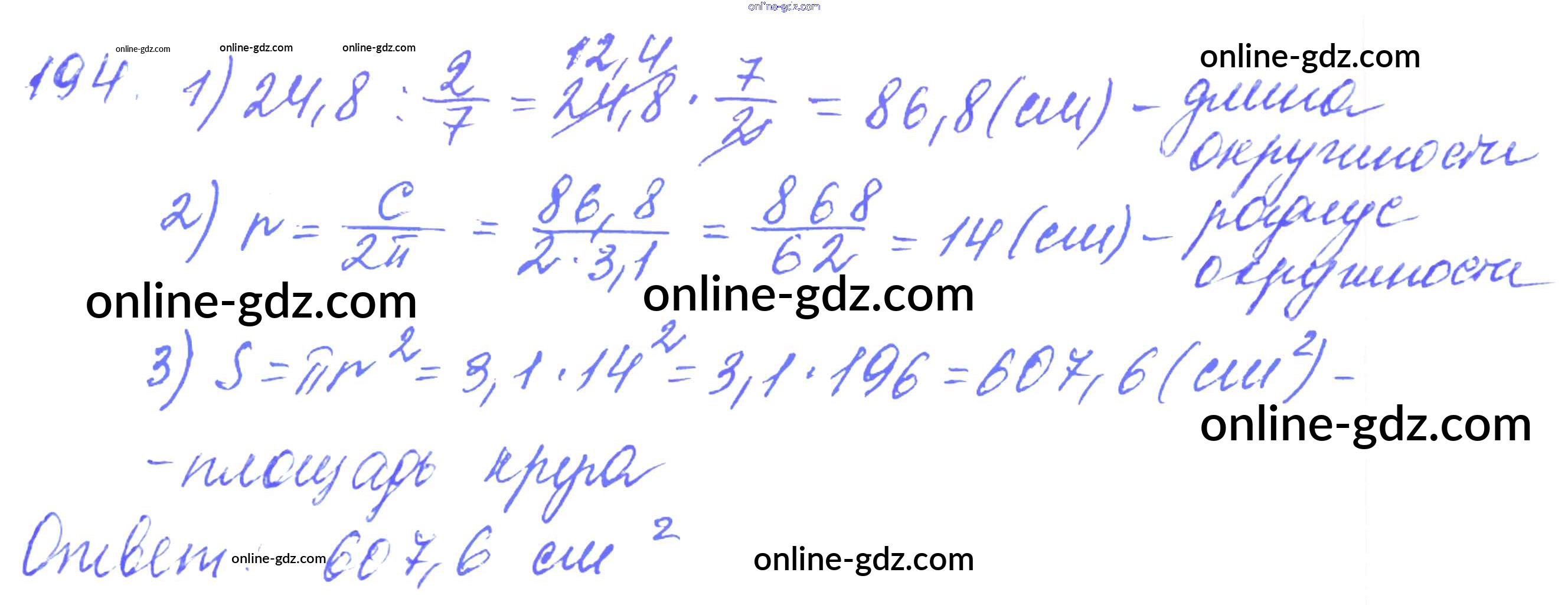 Готовые домашние задания по Математике за 6 класс Дидактические материалы Чесноков, Нешков 2014 - Вариант 2 Самостоятельные работы 194