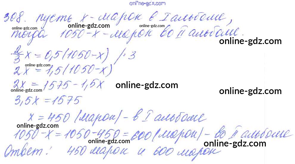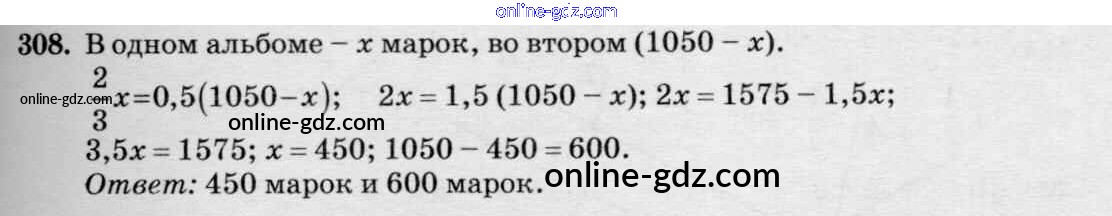 Готовые домашние задания по Математике за 6 класс Дидактические материалы Чесноков, Нешков 2014 - Вариант 2 Самостоятельные работы 308